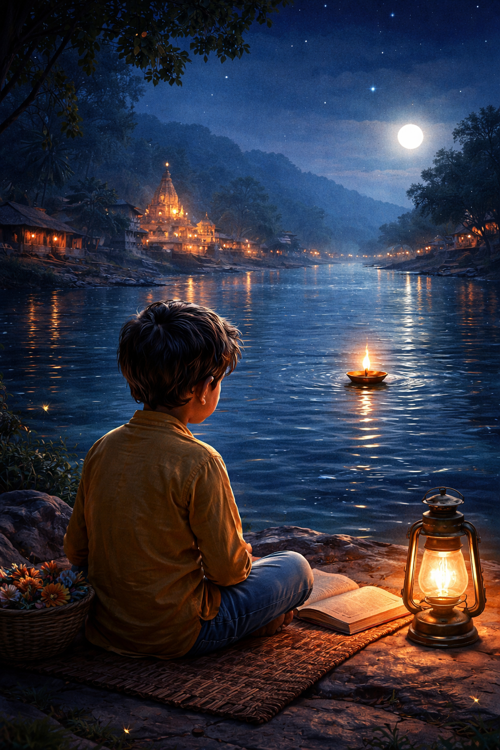 হঠাৎ বাতাসে ধূপের গন্ধ, দূরে মন্দিরের ঘণ্টা কাঁপল, আর রোশন দেখল নদীর জলে নীল আলো নাচছে, যেন কেউ ডাকছে নাম ধরে, সাহস আর ভয়ের মাঝখানে দাঁড় করিয়ে, তার বুকের ভিতর কাঁপা আশা জাগিয়ে দিল।