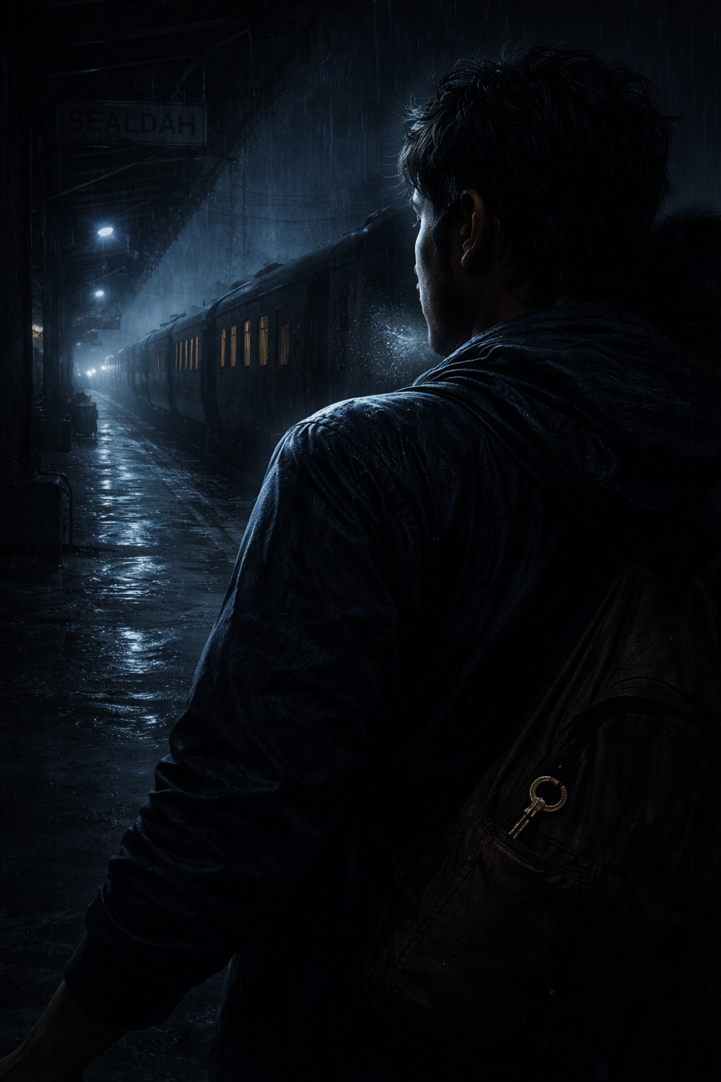 বৃষ্টিভেজা শিয়ালদহ স্টেশনে রাত বারোটার পর হঠাৎ বিদ্যুৎ চলে যায়। অন্ধকারে দাঁড়িয়ে থাকা রুদ্র অনুভব করে—কারও শ্বাস তার ঘাড়ের খুব কাছে। পকেটে রাখা পুরোনো চাবিটা হঠাৎ বরফের মতো ঠান্ডা হয়ে ওঠে।
