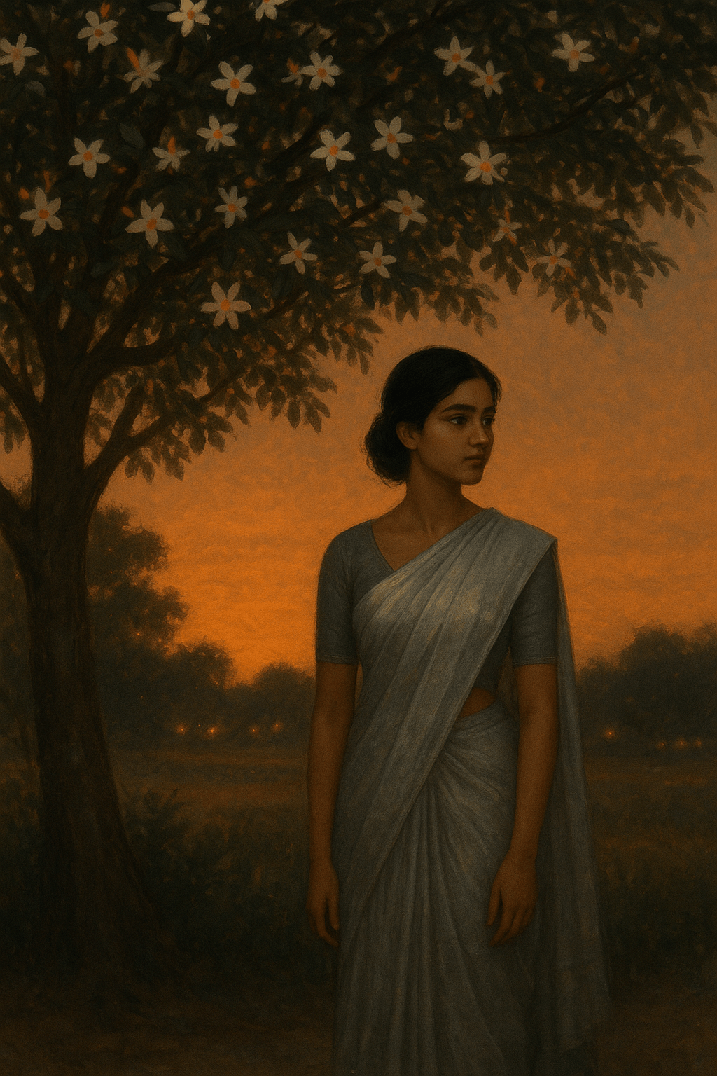 গ্রামের শিউলি গাছতলায় সন্ধের আলো গাঢ় হচ্ছে। রূপার শাড়ি পরে দাঁড়িয়ে আছে মিতালি। বাতাসে ভেসে আসছে দূরের ঢাকের শব্দ। হঠাৎ কাঁপা কণ্ঠে কেউ ডাকে— “মিতালি...”। পরিচিত কণ্ঠ, অথচ বহু বছর বাদে শোনা।